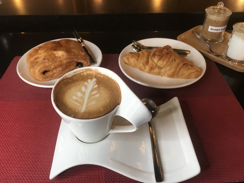 ที่นี่มีกาแฟทุกชนิดคะ จะดื่มอะไรมีหมด ขนมปัง ครัวซองค์ที่นี่ออร่อยมากคะ ราคาชิ้นละ 25 บาทเอง ชิ้นใหญ่มากคะ